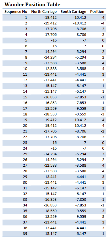 Figure XX. Wander Pattern of Sample Sections Loaded with 6-Wheel Gears on Both Sides.