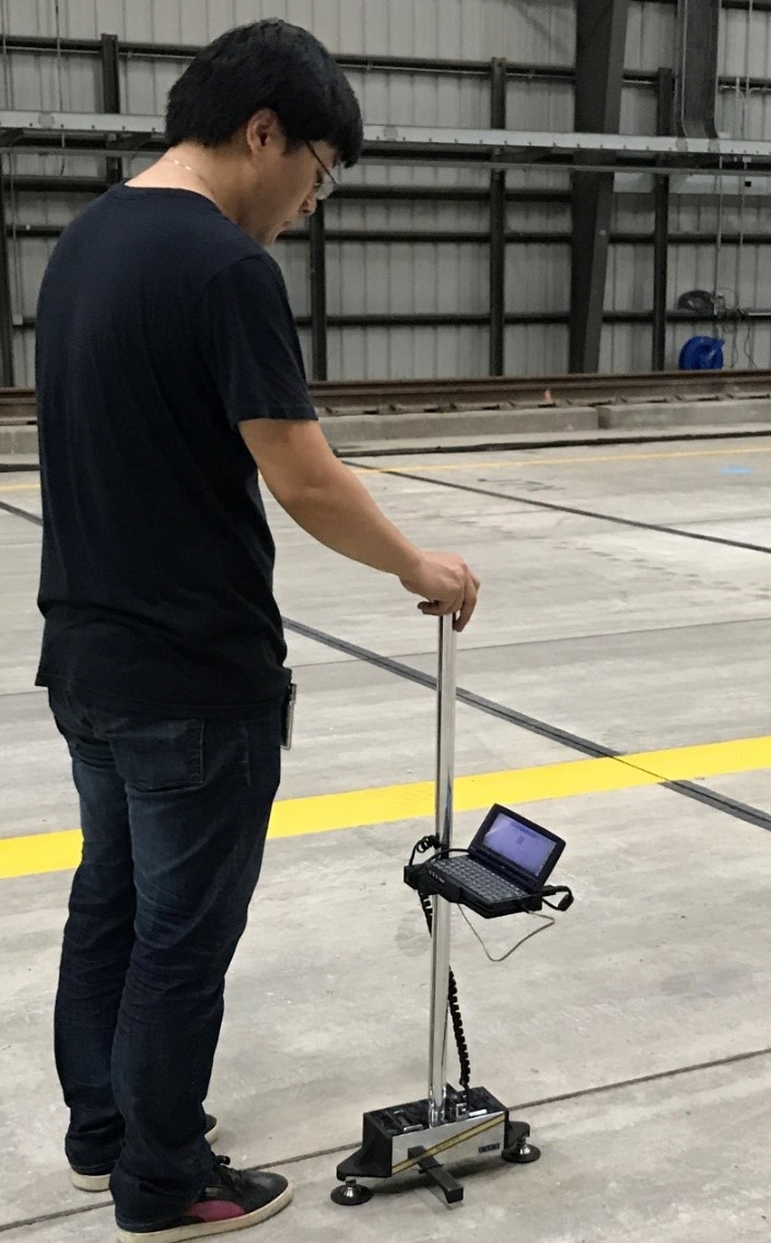 The Truss Profiler is similar to the Rail-to-Rail Profiler, with the exceptions of it being smaller, covering only part of the section, and is supported on casters instead of rails. The smaller size made it optimal for monitoring joint curling and joint performance on CC8.