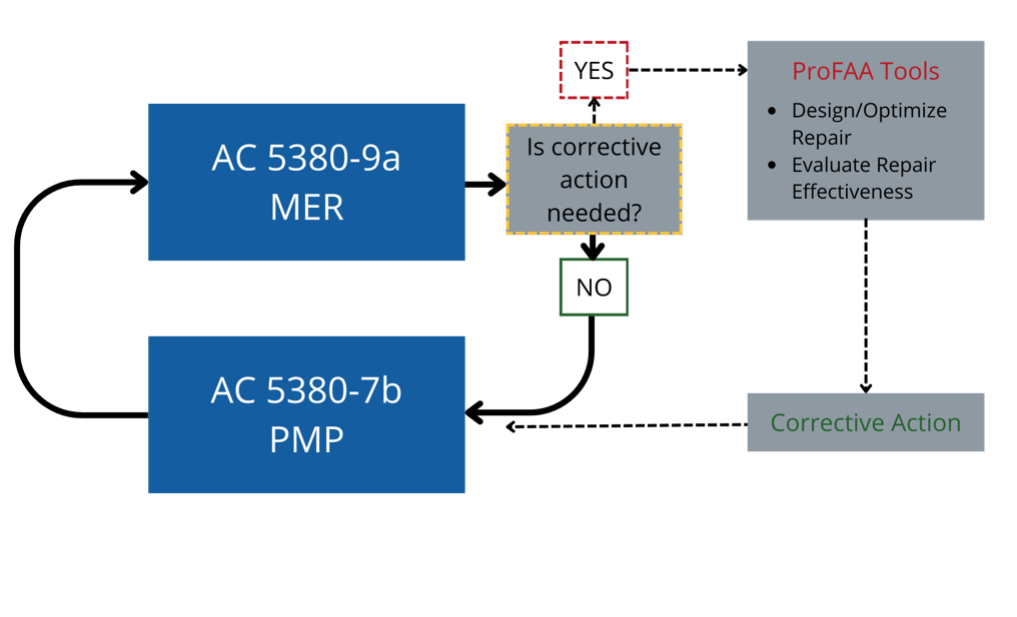 Figure 1 illustrates how FAA AC 150/5380-7 Airport Pavement Management and FAA AC 150/5380-9 Guidelines and Procedures for Measuring Airfield Pavement Roughness in conjunction with the ProFAA software, collaborate to track roughness growth and the corresponding corrective actions to extend pavement life.
