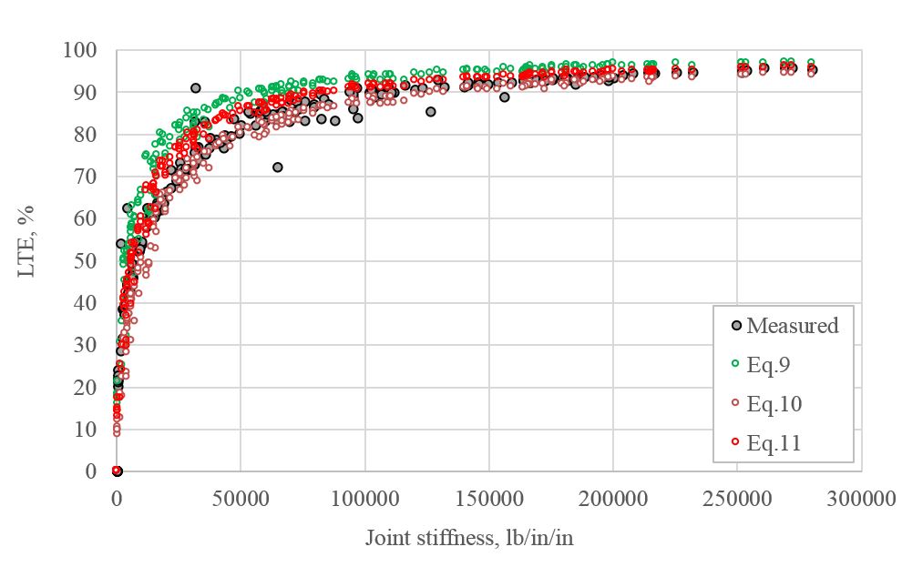 Joint stiffness was calculated using the deflection values from HWD testing. The joint stiffness was calculated using a series of equations and the correlations between LTE and joint stiffness were plotted.