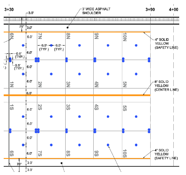 - Slab Center: HWD tests were carried out at the center of each slab to evaluate the properties of pavement layers throughout the traffic testing.