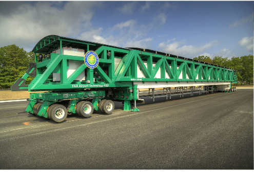 At this state-of-the-art, full-scale pavement test facility, built in partnership with the Boeing Company, FAA researchers conduct realistic traffic testing on various concrete and asphalt pavement structures. Rigid and flexible pavements embedded with hundreds of sensors are subjected to simulated aircraft traffic, enabling researchers to collect high quality, accelerated test data. Major features of the facility include a fully enclosed instrumented test track that is 900-feet (274m) long by 60-feet (18m) wide, a rail-based test vehicle capable of simulating aircraft weighing up to 1.3 million pounds (589,671 kg), and 20 independently adjustable test wheels. We operate our non-destructive testing equipment, including two HWDs, the NDT Van, and other equipment when evaluating the effects of the NAPTV on test pavements. LEARN MORE